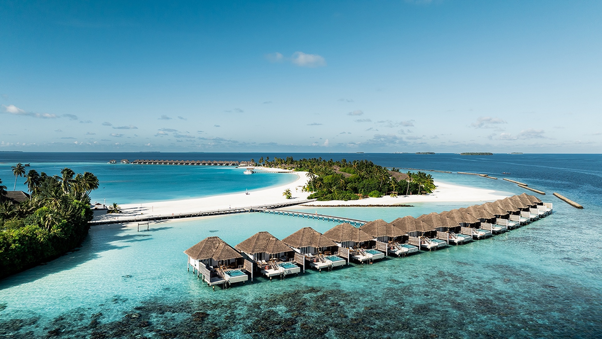 Sun Siyam Iru Veli is a luxurious island resort located in the South Nilandhe Atoll, Maldives. While staying at the property you get to enjoy a great house reef and frequent dolphin sightings. Nestled in a pristine lagoon with stunning white sand beaches, the resort offers an idyllic escape with spacious villas featuring private plunge pools. A seaplane journey takes approximately 40 minutes to reach the resort from Malé International Airport.