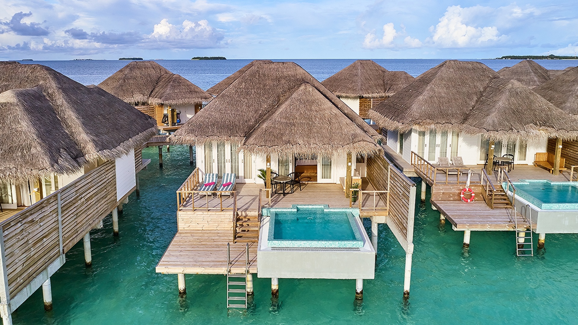 These are among the most popular ones which comprise overwater villas that are furnished with private pools and overwater hammocks for the best kind of leisure. The outdoor decks are pretty huge where you can go straight down to the lagoon. You find plenty of natural light entering through the hotel's sliding doors adding to the overall authentic experience. The bathrooms here have separate showers and freestanding tubs for your convenience.
